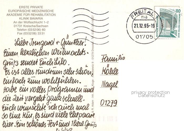 73842885 alte Postkarte Kreischa Klinik Bavaria Rehazentrum Details postalisch gelaufen Erhaltung siehe scans [FriedD77] KatCode: 11110014290260