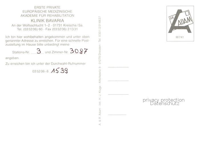 73842886 Kreischa Klinik Bavaria Rehazentrum Details postalisch nicht gelaufen Erhaltung siehe scans [FriedD77] KatCode: 11110014290260