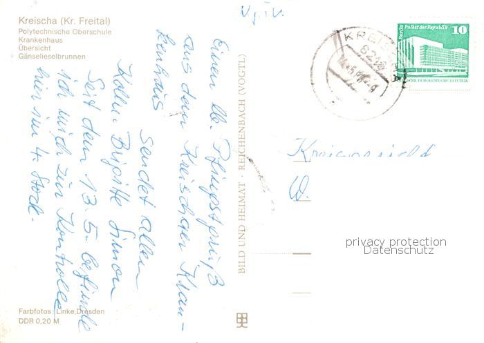 73870911 alte Postkarte Kreischa Polytechn Oberschule Krankenhaus uebersicht Gaenselieselbrunnen postalisch gelaufen Erhaltung siehe scans [WerneD78] KatCode: 11110014290260