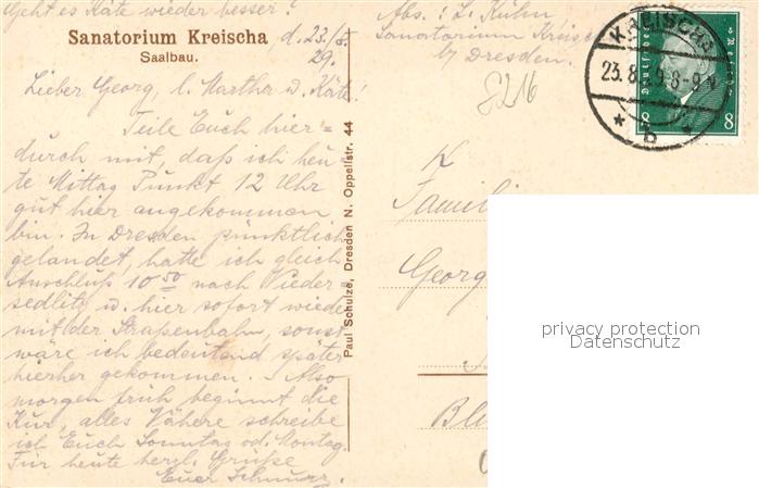 43329687 alte Postkarte Kreischa Sanatorium Saalbau postalisch gelaufen Erhaltung siehe scans [FriedD77] KatCode: 11110014290260