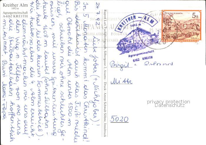 72426213 alte Postkarte Kreith Tirol Kreither Alm postalisch gelaufen Erhaltung siehe scans KatCode: 11390332070331