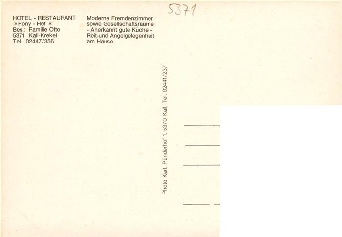 73912378 Krekel Hotel Restaurant Pony Hof Gastraeume Bar postalisch nicht gelaufen Erhaltung siehe scans [FriedD77] KatCode: 11110005366024