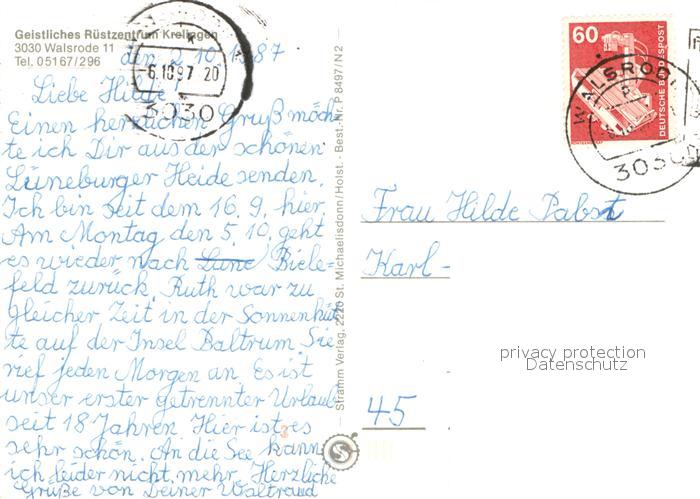 73649910 alte Postkarte Krelingen Geistliches Ruestzentrum postalisch gelaufen Erhaltung siehe scans [FriedD77] KatCode: 11110003358022