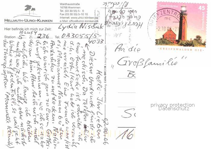 72636780 alte Postkarte Kremmen Hellmuth-Ulrici-Kliniken postalisch gelaufen Erhaltung siehe scans [NatalD47] KatCode: 11110012065165