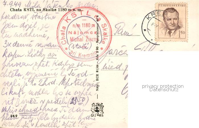 old postcard Kremnica Chata KSTL na Skalke postalisch gelaufen Erhaltung siehe scans [FriedD77]