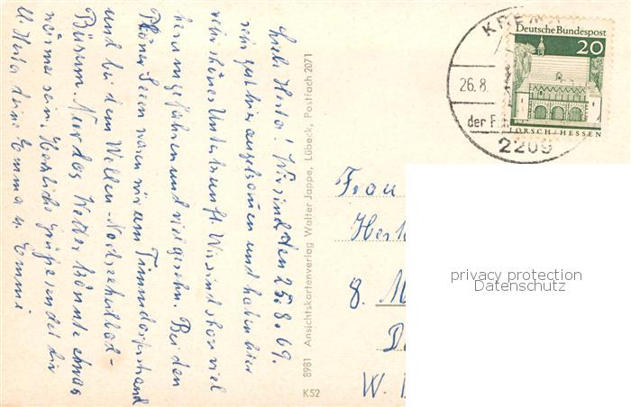 73833404 alte Postkarte Krempe Holstein Schwimmbad Rathaus Breite Strasse Siedlung Koenigsweg Schule postalisch gelaufen Erhaltung siehe scans [WerneD78] KatCode: 11110001061055