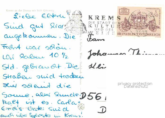 72681782 alte Postkarte Krems Donau mit Stift Goettweig postalisch gelaufen Erhaltung siehe scans [FriedD77] KatCode: 11390124030101