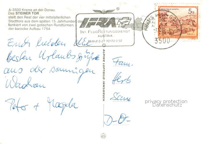 73625874 alte Postkarte Krems Donau Steiner Tor mit Rundtuermen postalisch gelaufen Erhaltung siehe scans [FriedD77] KatCode: 11390124030101