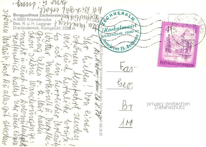 73244520 alte Postkarte Kremsbruecke Berggasthaus Zechneralm Landschaftspanorama Friesenhals Innerkrems Nockalmstrasse Pferde postalisch gelaufen Erhaltung siehe scans [FriedD77] KatCode: 11390212020642