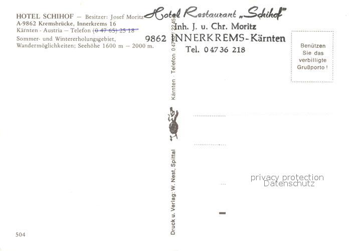 73130280 Kremsbruecke Hotel Schihof postalisch nicht gelaufen Erhaltung siehe scans [PaolaD17] KatCode: 11390212020642