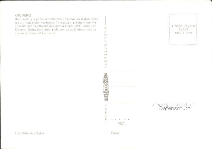 Kremsier Kromeriz Czechia Klement Gottwald Denkmal Kulturheim postalisch nicht gelaufen Erhaltung siehe scans