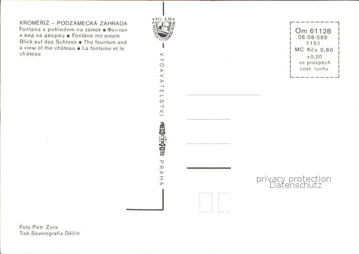 Kremsier Kromeriz Czechia Schloss mit Brunnen postalisch nicht gelaufen Erhaltung siehe scans