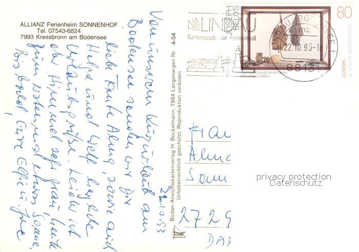 73720720 alte Postkarte Kressbronn Bodensee Allianz Ferienheim Sonnenhof Teilansichten m. Bodensee-Panorama postalisch gelaufen Erhaltung siehe scans [LiesaD40] KatCode: 11110008435029