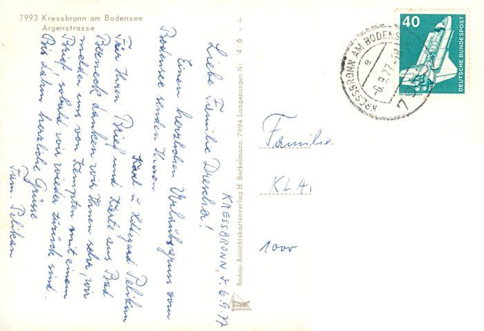 73887284 alte Postkarte Kressbronn Bodensee Argenstrasse Fliegeraufnahme postalisch gelaufen Erhaltung siehe scans [FriedD77] KatCode: 11110008435029