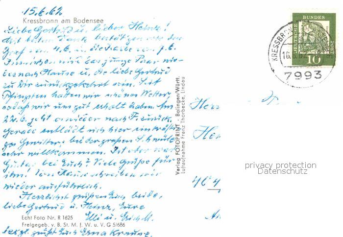 32659678 alte Postkarte Kressbronn Bodensee Fliegeraufnahme postalisch gelaufen Erhaltung siehe scans [AndreD76] KatCode: 11110008435029