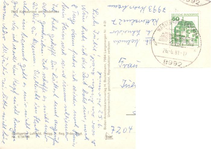 73879335 alte Postkarte Kressbronn Bodensee Fliegeraufnahme postalisch gelaufen Erhaltung siehe scans [FriedD77] KatCode: 11110008435029