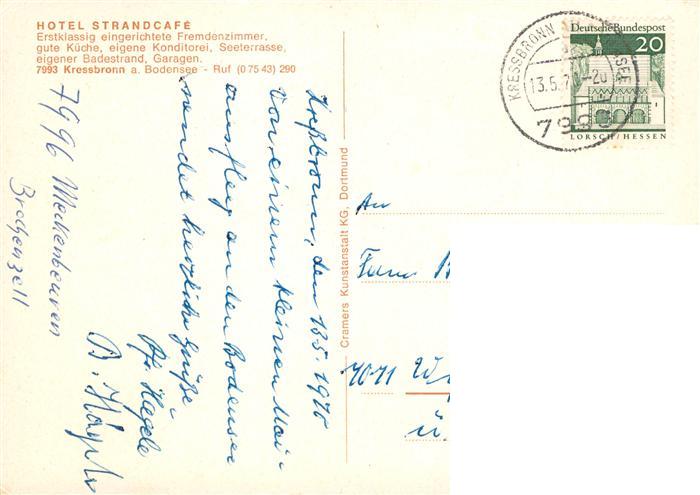 73898294 alte Postkarte Kressbronn Bodensee Hotel Strandcafe postalisch gelaufen Erhaltung siehe scans [WerneD78] KatCode: 11110008435029