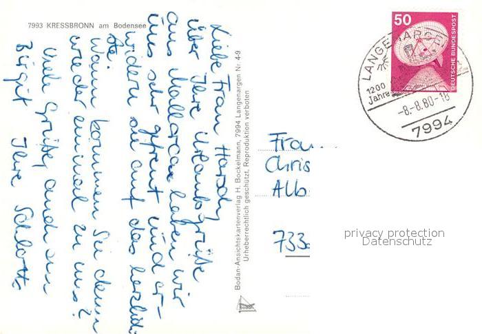 73237617 alte Postkarte Kressbronn Bodensee Kirschenernte See Saentis Kurpark Landesteg Weinbau Fachwerk postalisch gelaufen Erhaltung siehe scans [LiesaD40] KatCode: 11110008435029