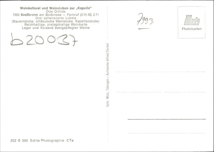 30725670 Kressbronn Bodensee Kressbronn Weinstuben zur Kapelle postalisch nicht gelaufen KatCode: 11110008435029