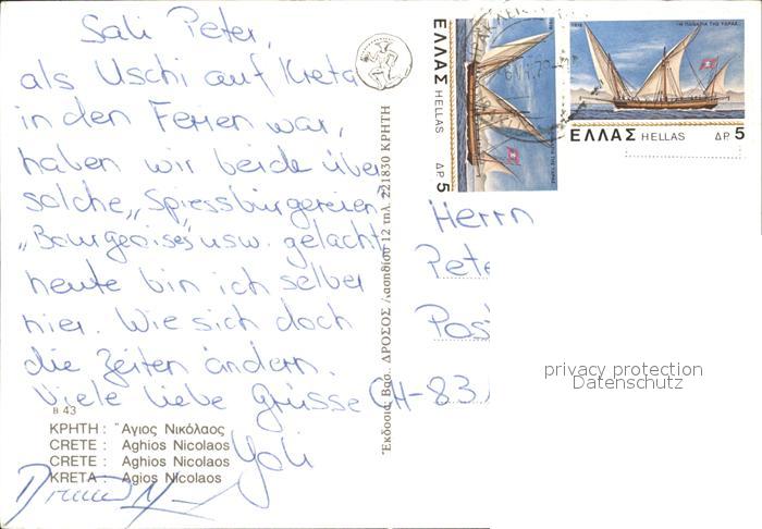 old postcard Kreta Crete Agios Nicolaos postalisch gelaufen