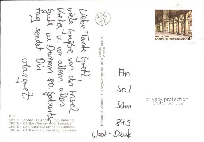 old postcard Kreta Crete Canea Schucht Samaria postalisch gelaufen Erhaltung siehe scans