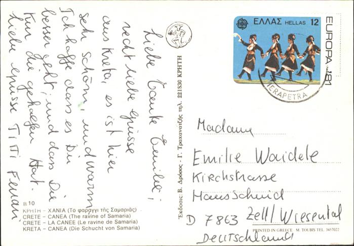 old postcard Kreta Crete Faraggi Samarias postalisch gelaufen