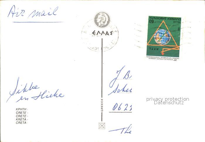 old postcard Kreta Crete Festung Hafen Landkarte Palast von Knossos postalisch gelaufen
