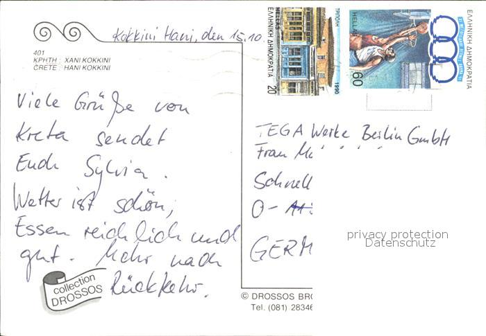 old postcard Kreta Crete Fliegeraufnahme Kokkini Hani postalisch gelaufen
