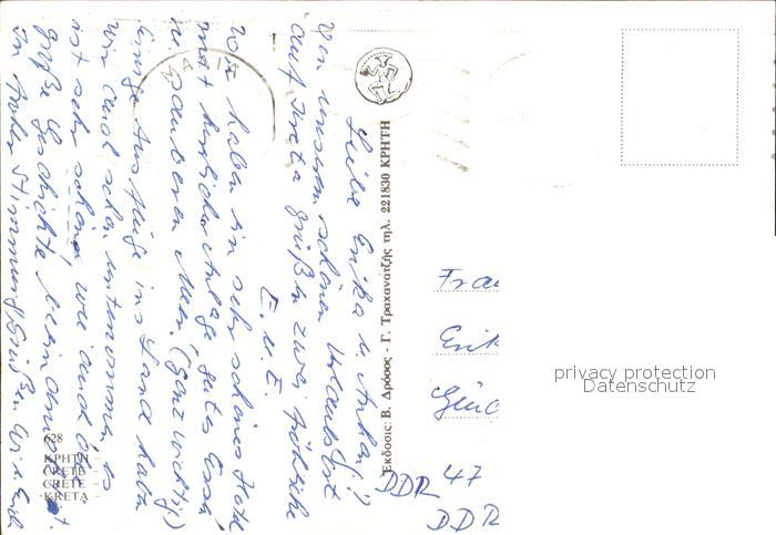 old postcard Kreta Crete Hafenpartie Angeln Palast von Knossos Strand postalisch gelaufen Erhaltung siehe scans