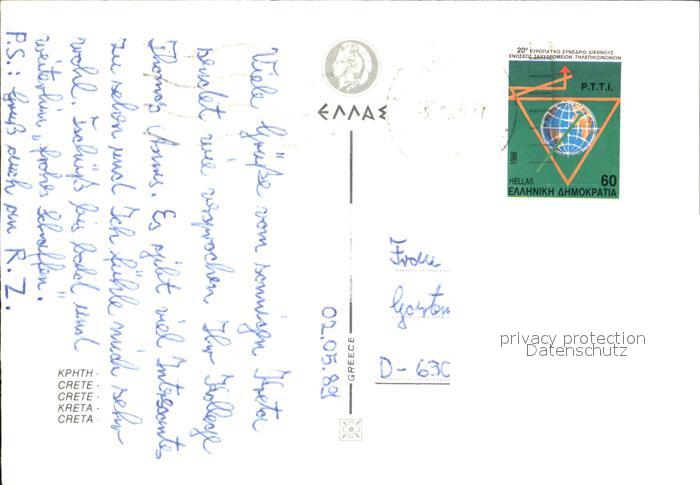 old postcard Kreta Crete Hafenstaedte Hafen postalisch gelaufen Erhaltung siehe scans