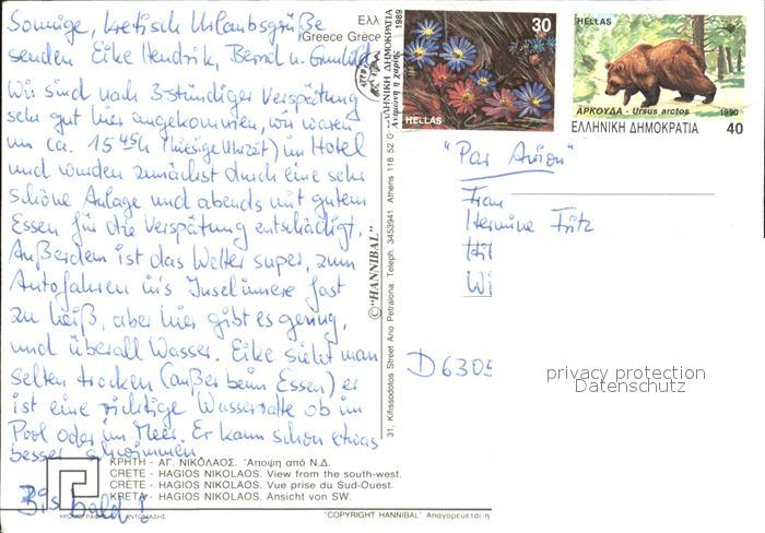 old postcard Kreta Crete Hagios Nikolaos postalisch gelaufen Erhaltung siehe scans [WerneD78 kv017box]