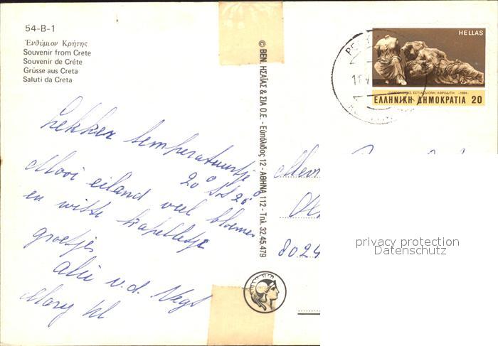 old postcard Kreta Crete Kirche Nationaltracht tanzen postalisch gelaufen