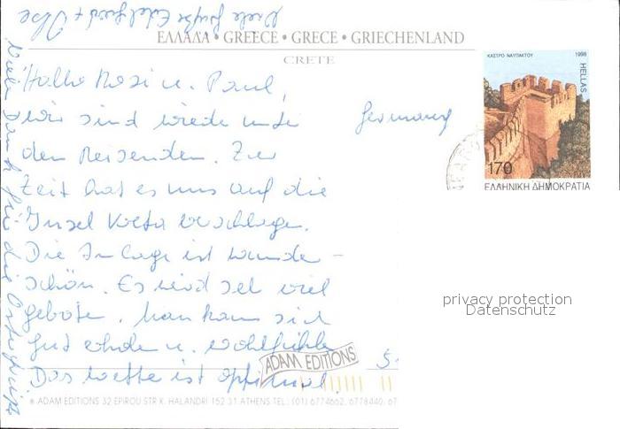old postcard Kreta Crete Kirche Strand Hafen postalisch gelaufen Erhaltung siehe scans
