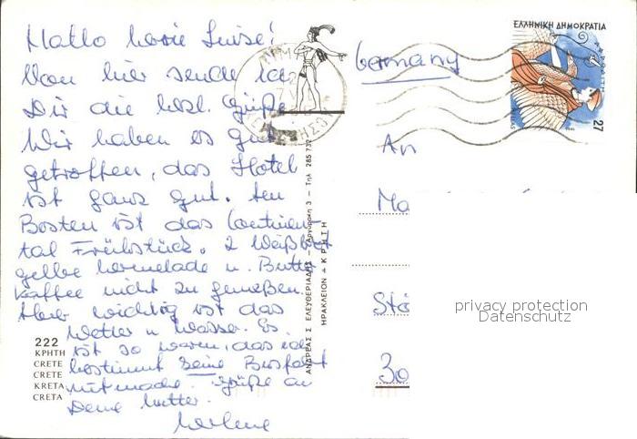 old postcard Kreta Crete Kphth Nationaltracht Esel postalisch gelaufen Erhaltung siehe scans