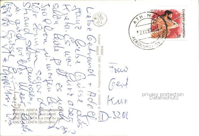 old postcard Kreta Crete Lenta Strand Boote postalisch gelaufen Erhaltung siehe scans