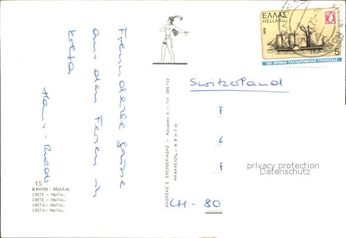 old postcard Kreta Crete Malia postalisch gelaufen Erhaltung siehe scans