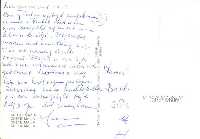 old postcard Kreta Crete Malia postalisch gelaufen Erhaltung siehe scans