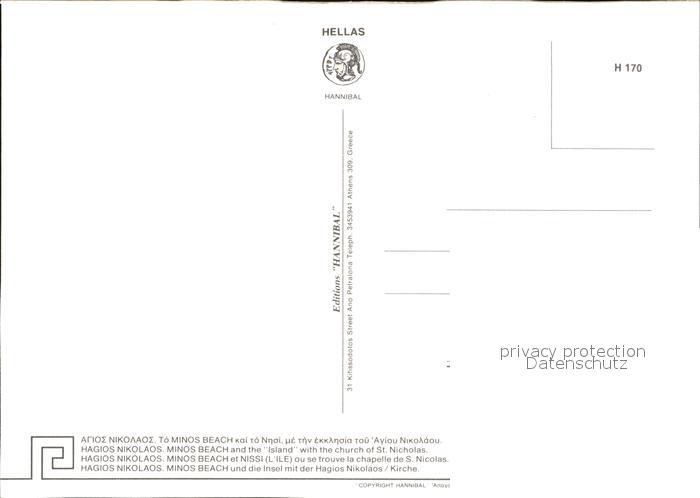 Kreta Crete Minos Beach Insel mit Hagios Nikolaos Kirche postalisch nicht gelaufen Erhaltung siehe scans