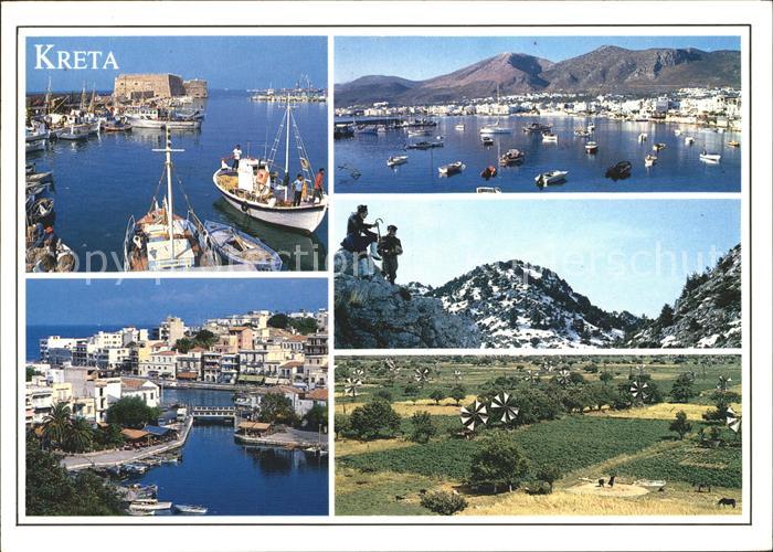 old postcard Kreta Crete Panorama Hafen Fischkutter Landschaft postalisch gelaufen