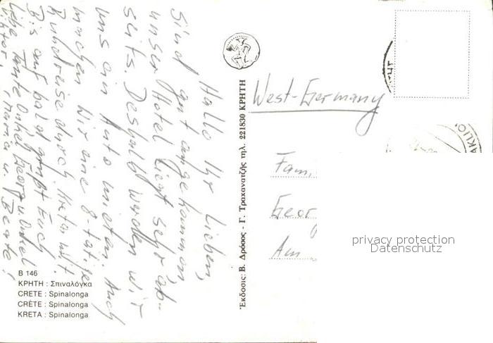 old postcard Kreta Crete Spinalonga postalisch gelaufen Erhaltung siehe scans