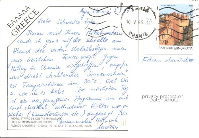 old postcard Kreta Crete Strand postalisch gelaufen Erhaltung siehe scans