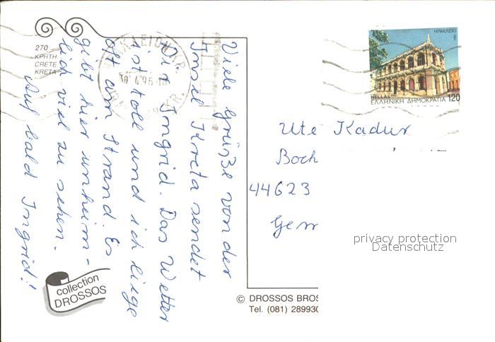 old postcard Kreta Crete Teilansichten Hafen Fischerboot postalisch gelaufen Erhaltung siehe scans