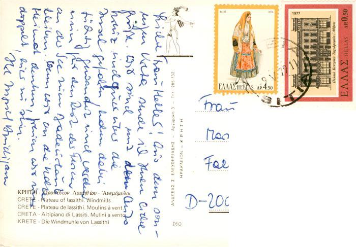 old postcard Krete Kreta Crete Greece Die Windmuehle von Lassithi postalisch gelaufen Erhaltung siehe scans [WerneD78]