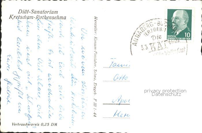 71927959 alte Postkarte Kretscham-Rothensehma Diaet Sanatorium postalisch gelaufen Erhaltung siehe scans KatCode: 11110014171240