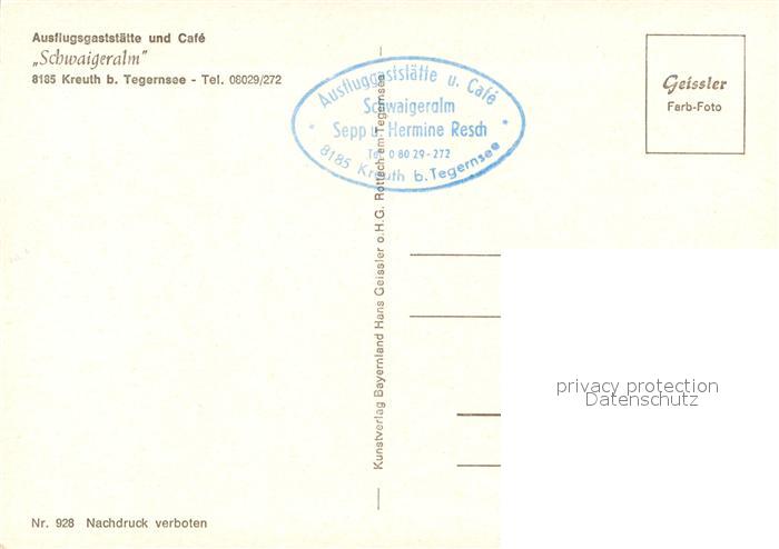 73165420 Kreuth Tegernsee Ausflugsgaststaette Cafe Schwaigeralm postalisch nicht gelaufen Erhaltung siehe scans [KathaD81] KatCode: 11110009182124
