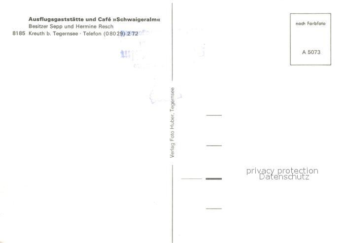 73030623 Kreuth Tegernsee Ausflugsgaststaette Cafe Schwaigeralm postalisch nicht gelaufen Erhaltung siehe scans [KathaD81] KatCode: 11110009182124