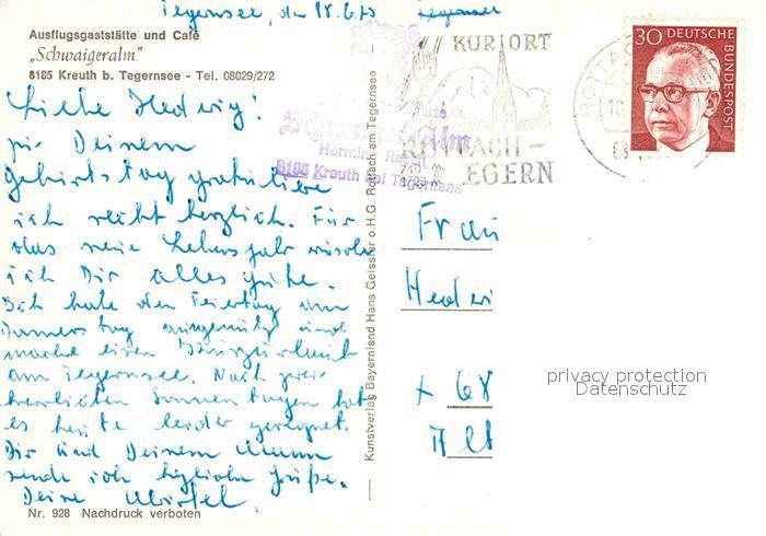 72707023 alte Postkarte Kreuth Tegernsee Ausflugsgaststaette Cafe Schwaigeralm postalisch gelaufen Erhaltung siehe scans [FriedD77] KatCode: 11110009182124