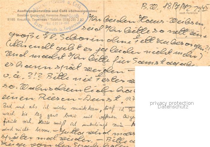 73646311 Kreuth Tegernsee Ausflugsgaststaette Cafe Schwaigeralm Gastraum postalisch nicht gelaufen Erhaltung siehe scans [FriedD77] KatCode: 11110009182124