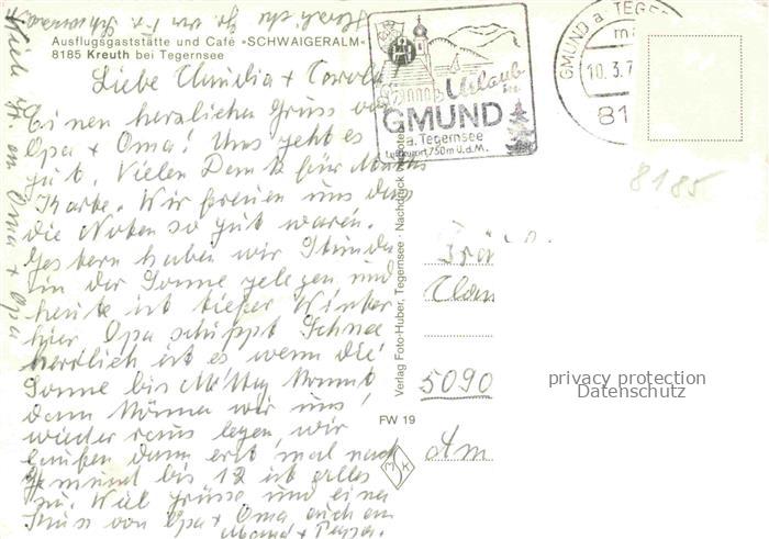 74121810 Kreuth Tegernsee Ausflugsgaststaette und Cafe Schwaigeralm postalisch gelaufen Erhaltung siehe scans [WerneD78] alte Postkarte Wern Katcode 11110009182124
