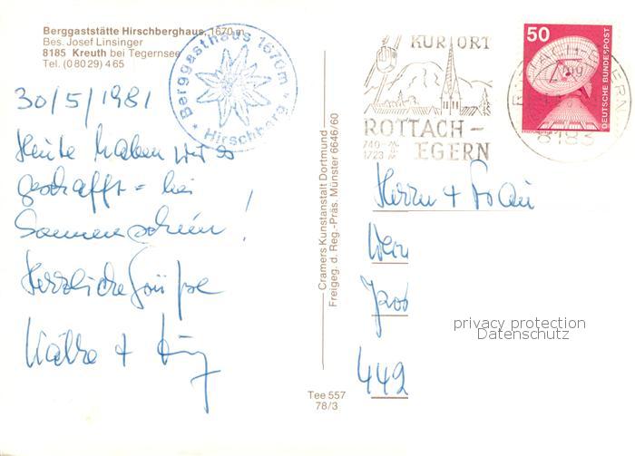 73780610 alte Postkarte Kreuth Tegernsee Berggaststaette Hirschberghaus Fliegeraufnahme postalisch gelaufen Erhaltung siehe scans [WerneD78] KatCode: 11110009182124